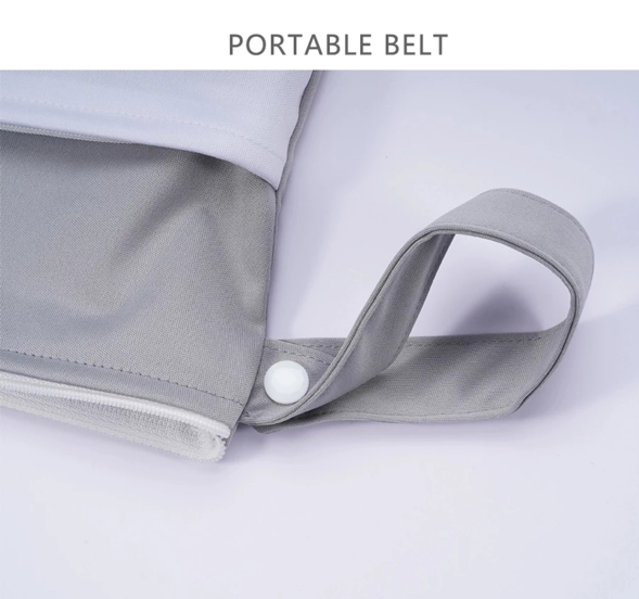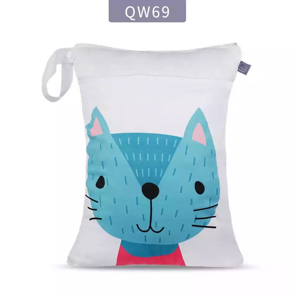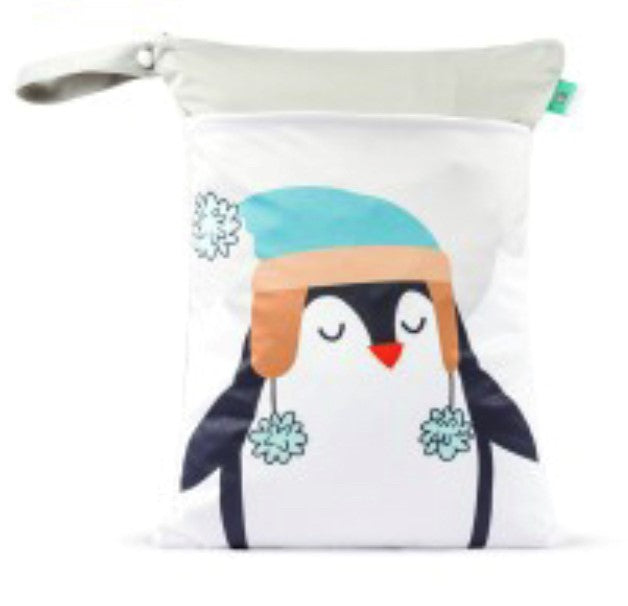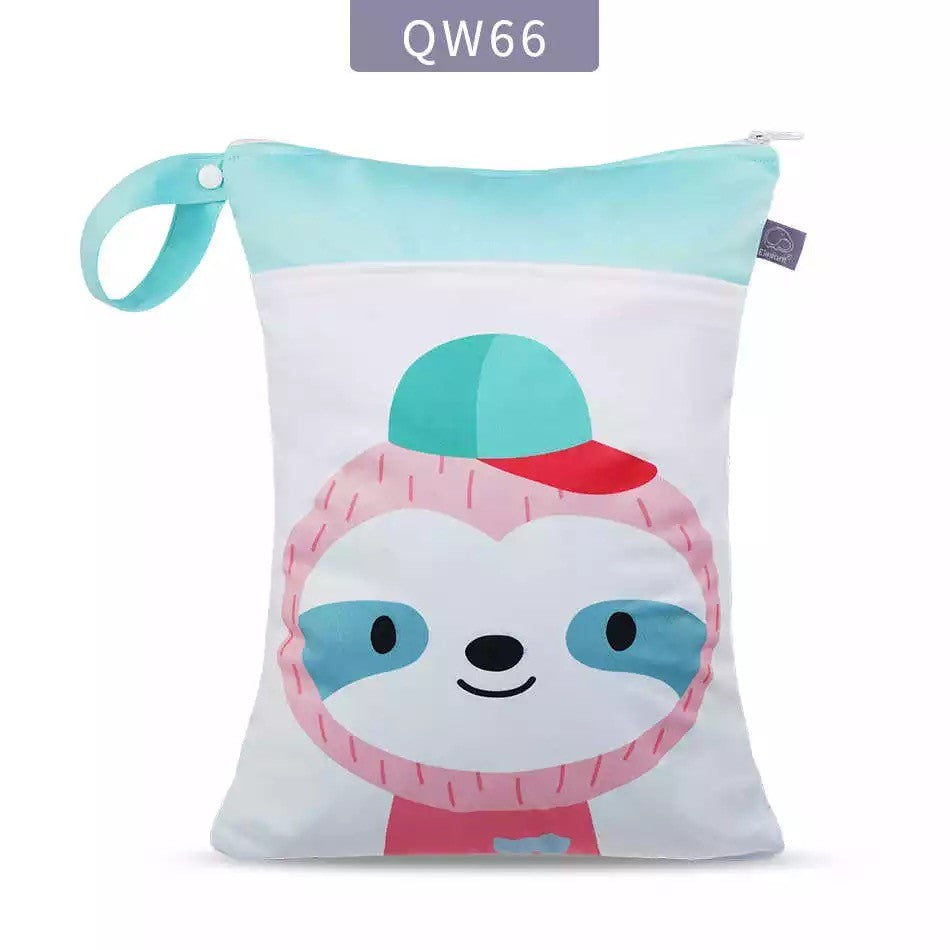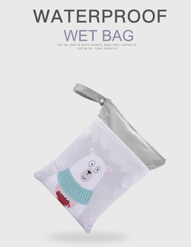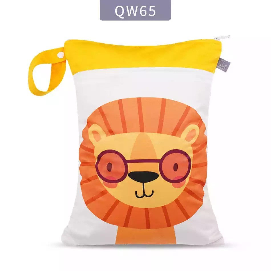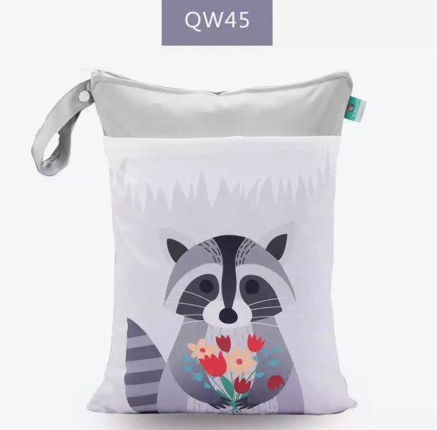 حفاضات / كيس مبلل يسمح لك بحمل أغراضك الرطبة والجافة في نفس الحقائب. مصنوع من قماش PUL ويحتوي على قسمين يسمحان لك بتخزين كل من العناصر الرطبة والجافة. يمكن تخزينها في حقيبة الطفل كمنظم حفاضات ، أو تعليقها على عربة الأطفال ، أو حملها ببساطة. مفيد جدًا للملابس المتسخة أو ملابس السباحة المبللة!