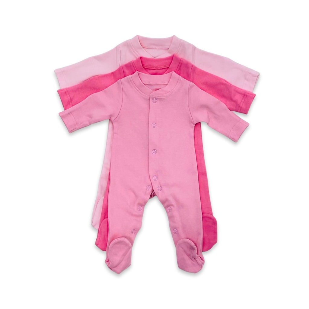 With integral scratch mitts, this pack of 3 cotton sleepsuits features printed back neck labels for softness against your baby's neck. Free from harmful dyes or chemicals and with nickel-free poppers.